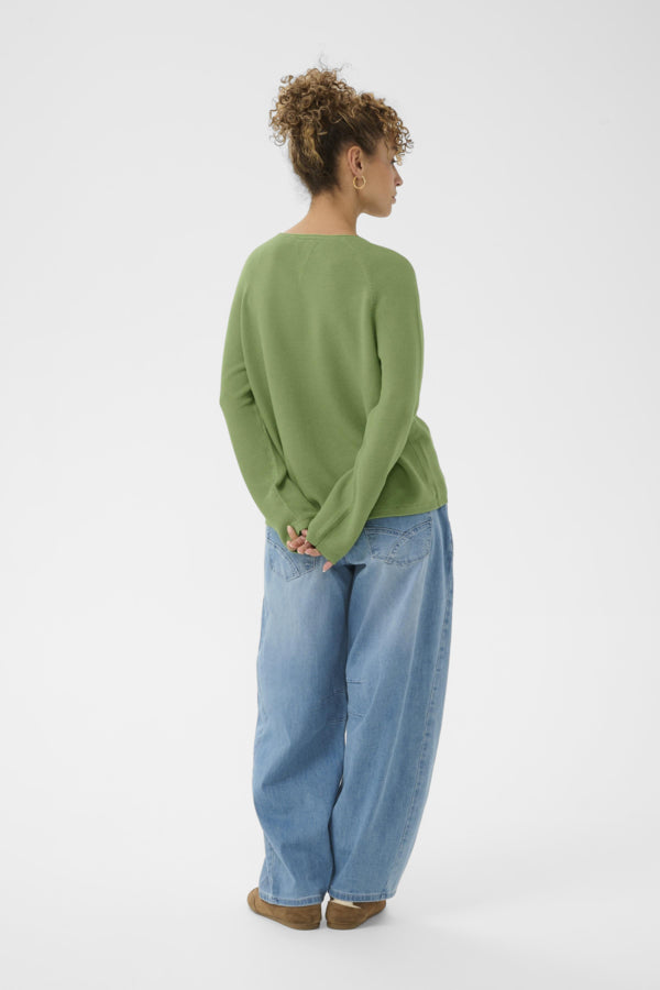 Smooth knit, cotton sloppy Joe jumper with a V-neckline available in paprika or jade.