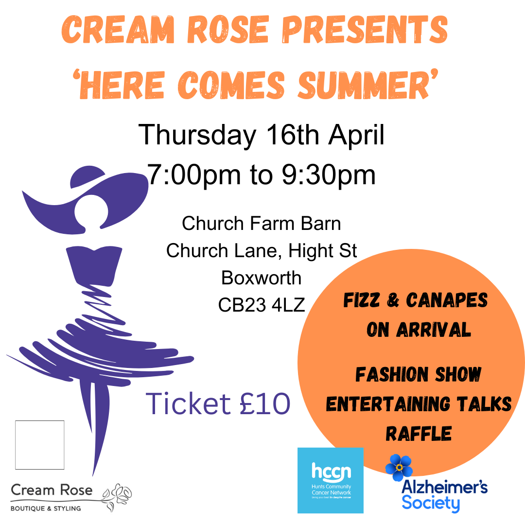 Ticket for our amazing charity evening - 'Here Comes Summer' on Thursday 16th April 2026 at Church Barn Boxworth.